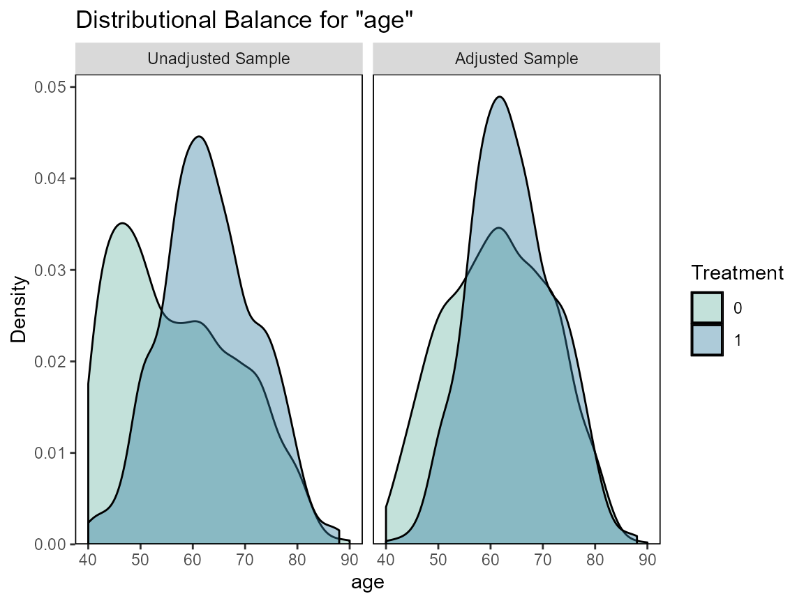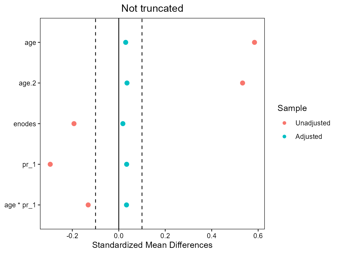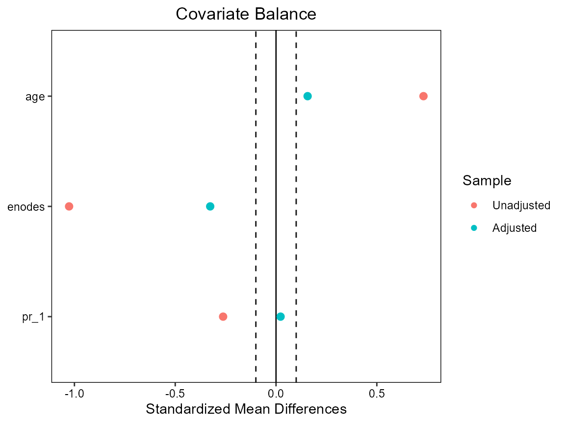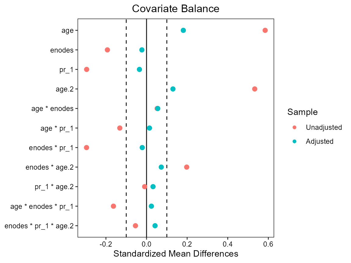 # Covariate balance plot (love plot - named after Thomas E. Love)
